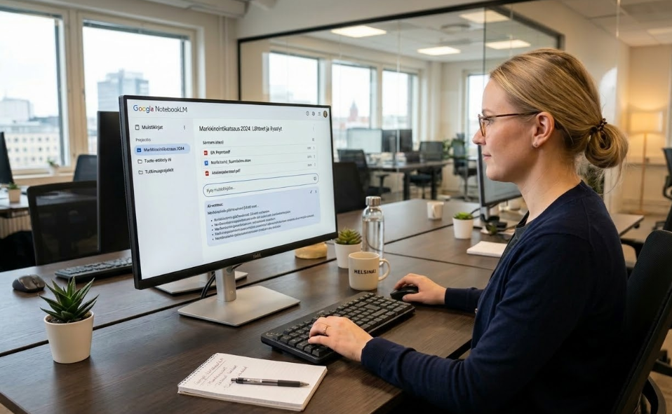 Google NotebookLM on tekoälypohjainen tutkimus- ja muistiinpanotyökalu, joka rakentuu käyttäjän omien lähteiden ympärille. Käytännössä käyttäjä luo muistikirjan, lisää siihen haluamansa aineiston ja alkaa keskustella sisällön kanssa.